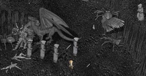 При приручении hi-end-монстров (Dragon, Nightmare, White Wyrm) самое главное — найти такое место где Вы можете их тамить, а они не могут плеваться в Вас. Это удается сделать в том случае, если вы с монстром находитесь на разных уровнях, но не дальше одного tile друг от друга (присмотритесь к screenshoots с nightmare и драконом).