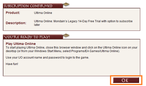 4. Если вы всё ввели верно, появится вот такая страница, на которой нужно нажать ОК. Если появится ошибка — проверьте правильность ввода ваших данных.