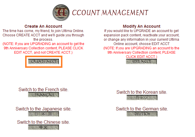 1. Заходим на сайт https://account.ea.com/myacct/uo/uo-hub.jsp?skin=uo и нажимаем кнопку ‘Create Acct’.