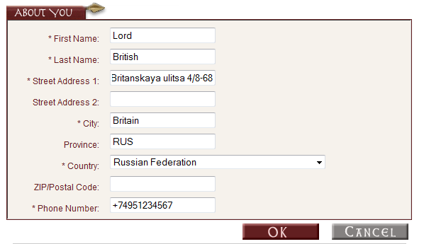 9. Вводим информацию о себе.