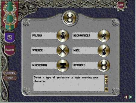 При создании персонажа перед вами появляется информационное окно, в котором вам представляется следующий выбор профессий: