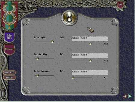 Параметры силы, ловкости, интеллекта лучше будет оставить как есть (60 – 10 – 10). Хотя если создавать персонажа использующего магию, то лучше будет увеличить параметр интеллекта.