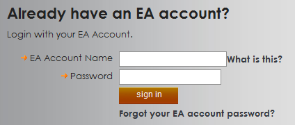 Если у вас уже есть EA Account (мало ли раньше довелось его регистрировать для какой-либо игры) — слева сверху под заголовком ‘Already have an EA account?’ вводите ваши данные EA аккаунта (не путайте с UO аккаунтом!) и переходите к пункту №5 в нашей инструкции, если нет — читаем дальше.
