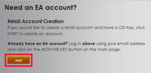 На странице https://accounts.eamythic.com/ под заголовком ‘Need an EA account?’ нажимаем кнопочку ‘Start.’