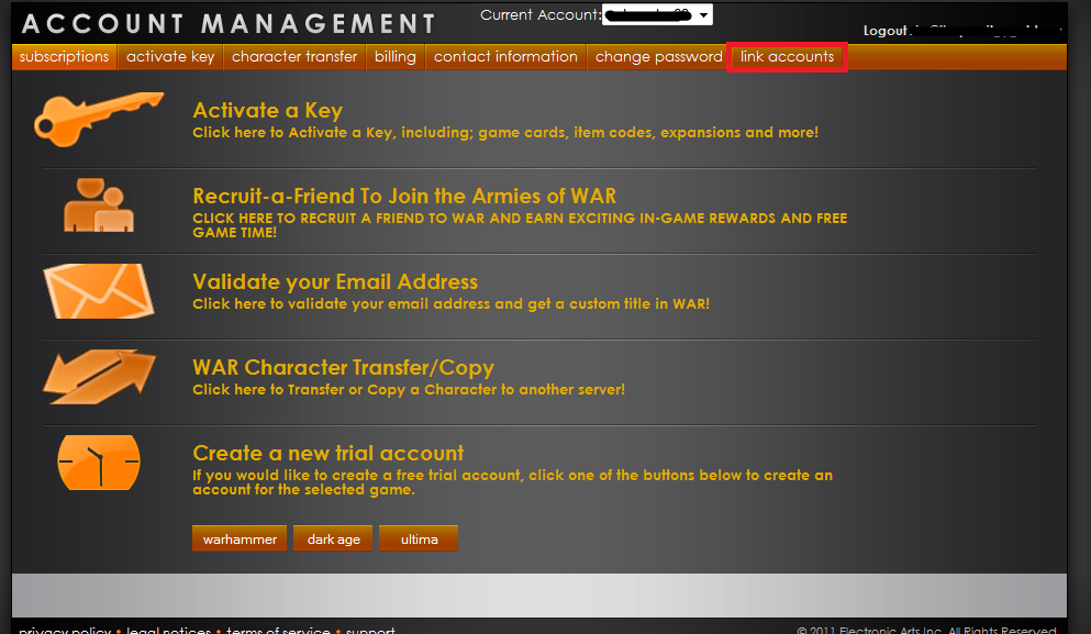 Вуаля, интеграция вашего UO аккаунта в новый биллинг завершена. Теперь после захода в EA Account сверху в выпадающем меню ‘Current Account’ вы всегда сможете выбрать свой UO аккаунт и уже в нём разбираться со своими подписками и аддонами.