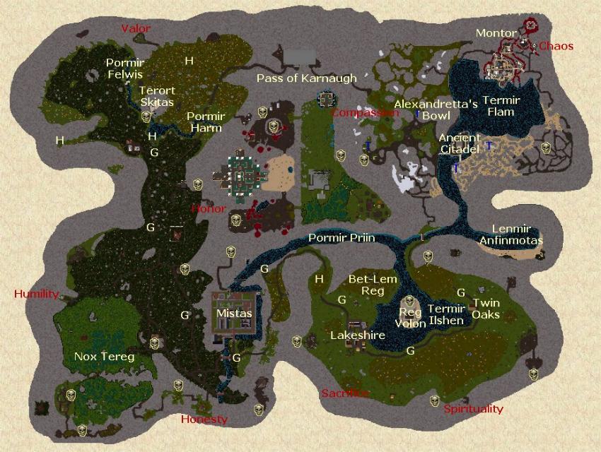 Огромное количество искателей приключений из Траммеля и Фелукки устремились в земли новой грани — Илшенар. Ежедневно школярам Ликаеума доставляли все новые карты, дневники и документы исследователей. На основании их удалось воссоздать историю Илшенара с момента его образования (т.е. разбиения Алмаза Бессмертия в изначальной Созарии), хотя это было и не легко: жители сей грани использовали два языка, радикально отличавшиеся один от другого. Итак, небольшой экскурс в глубины веков…
